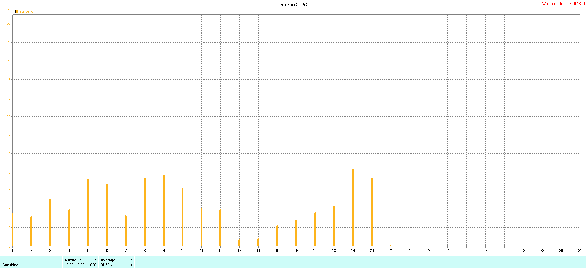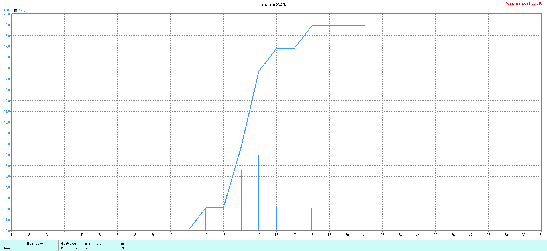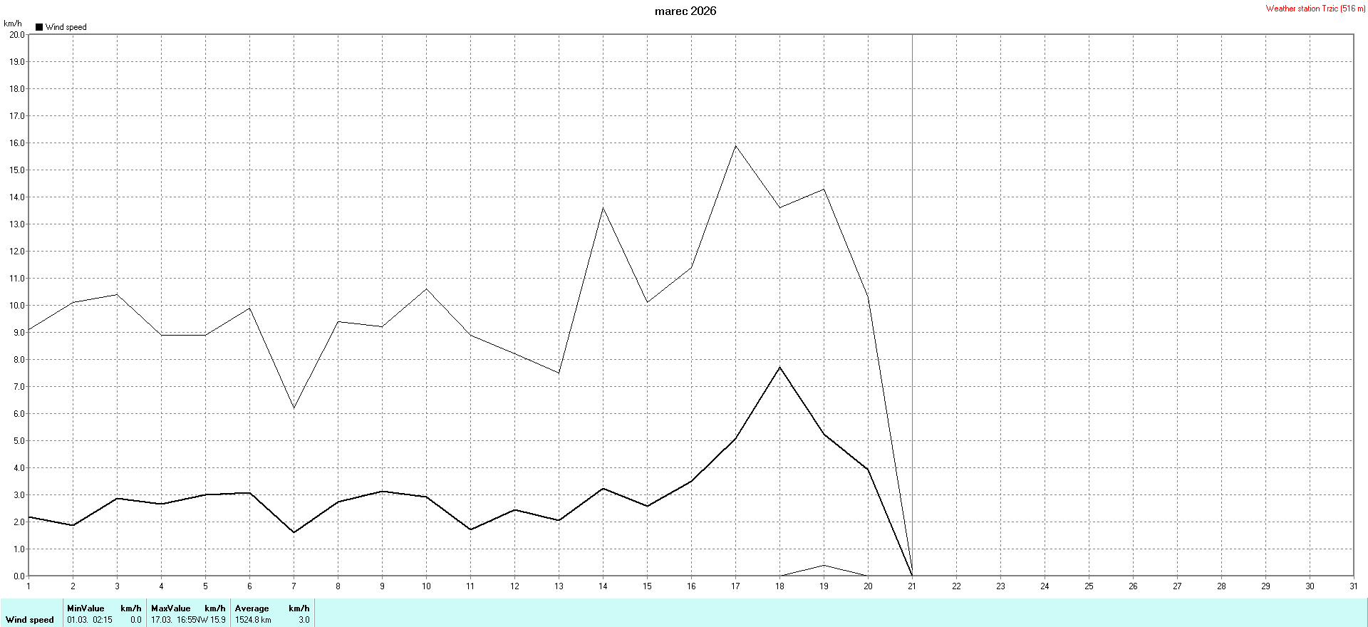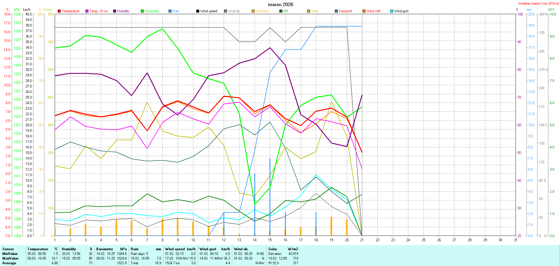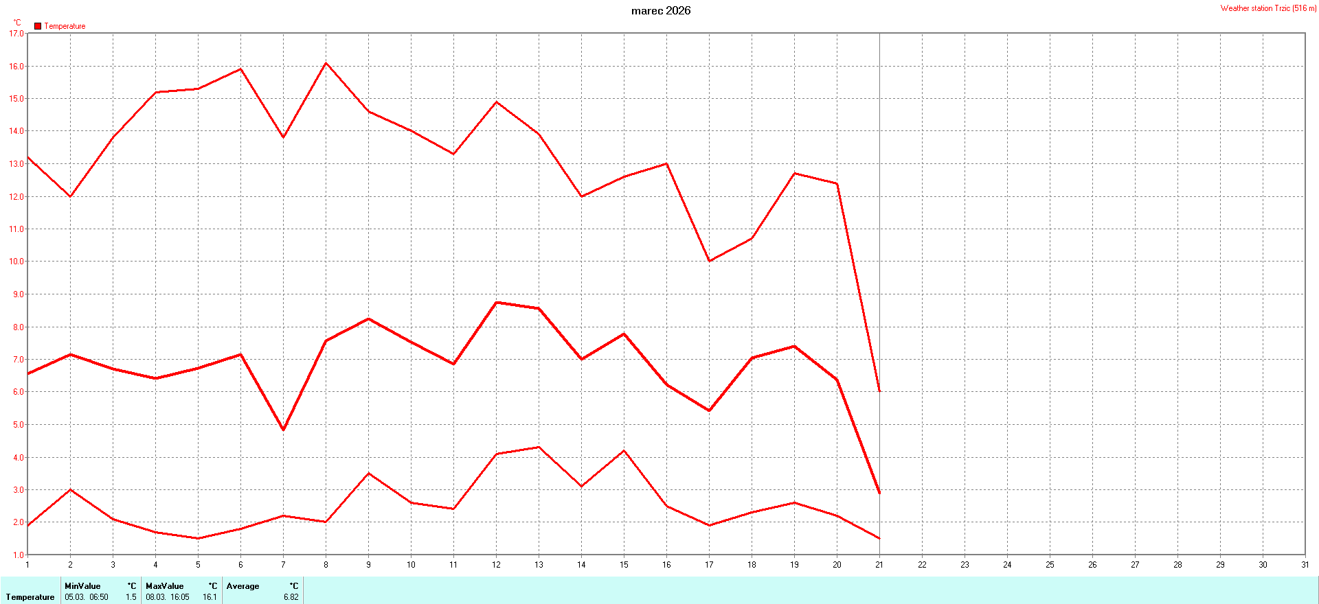 Weather calendar Weather station Trzic vom 01. bis 16. 03. 2026 -